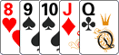 Escalera Real Escalera del mismo color desde el 10 al As. Ejemplo : 10P, JP, QP, KP, AP |